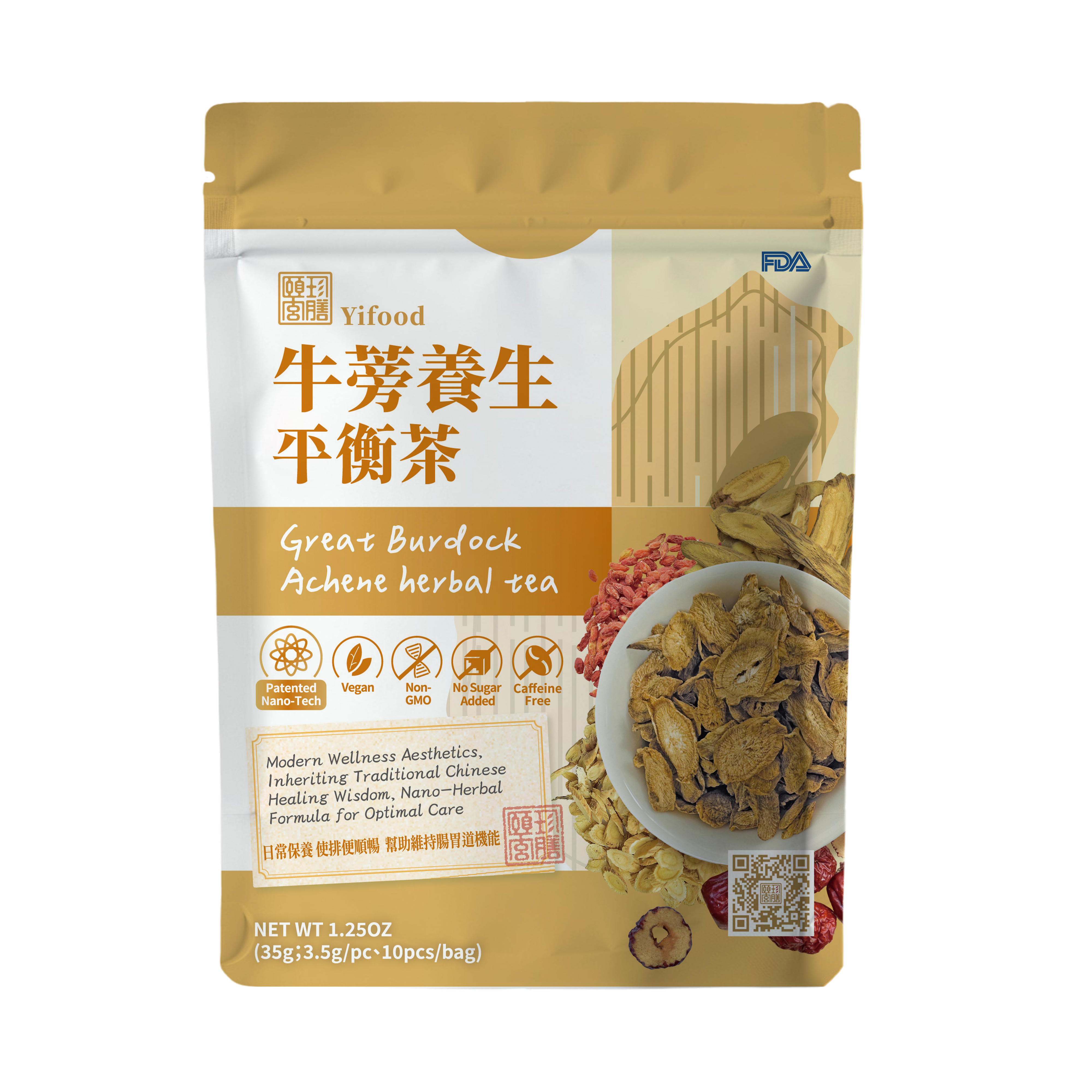 【Yifood】腸内環境を整える、台湾漢方ハーブティー「ごぼう茶」<1ケース(20袋入り)>